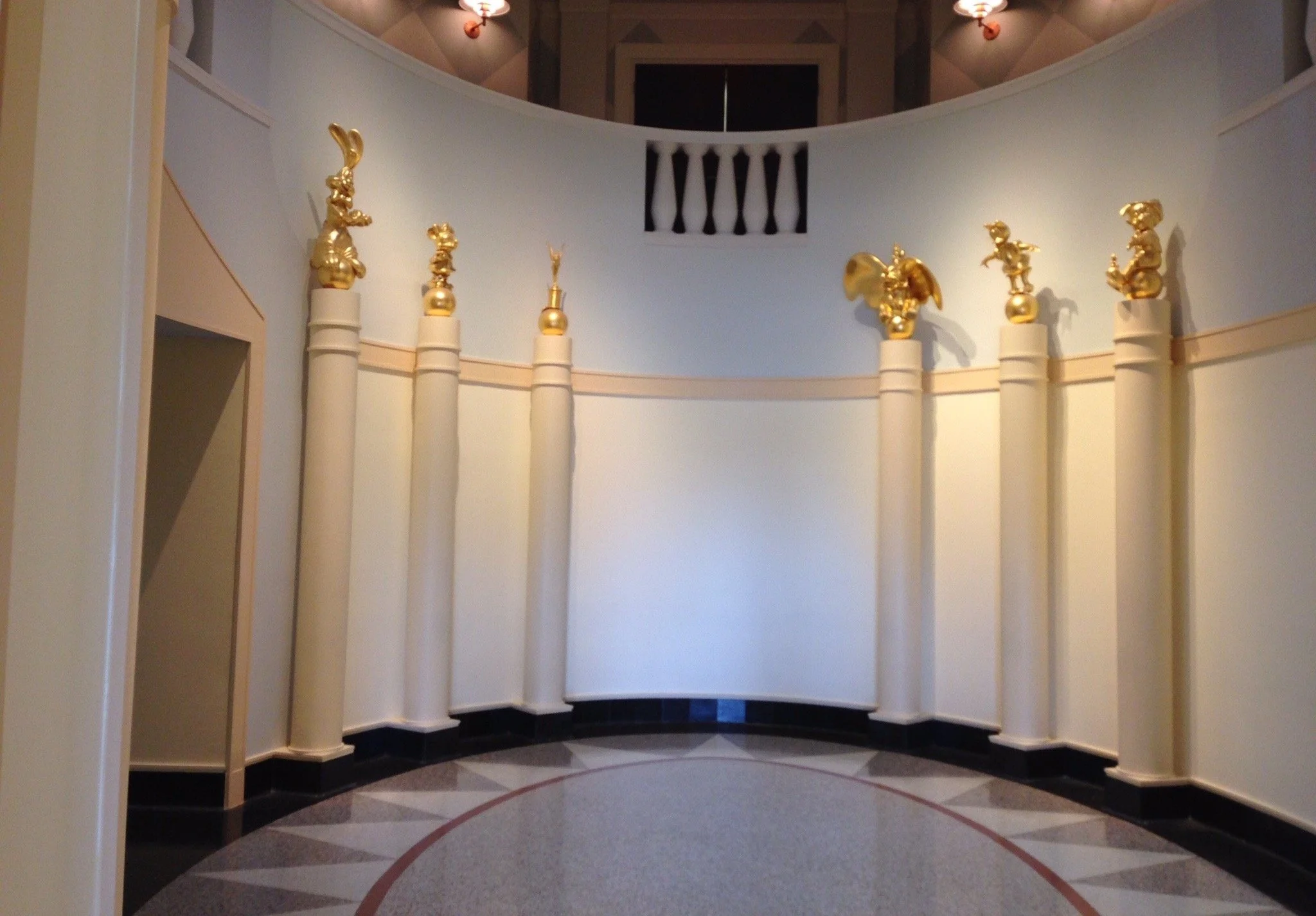 As I opened the doors which were themed to look like the doorknobs that speak from the Disney classic film Alice and Wonderland, I stepped into an atrium with gold statuettes of classic Disney characters from, Dumbo to Roger Rabbit. Even the air in that atrium smelled magical, like there was pixie dust in the air. I walked up a long ramp where next to me was a mural on the wall of Walt Disney holding a sketch book and Peter Pan and Wendy were painted on the ceiling flying off to Never Never Land. Well, that’s exactly where I wanted to go! Neverland!